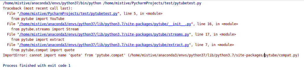 내가 만났던 에러 : ImportError: cannot import name 'quote' from 'pytube.compat'