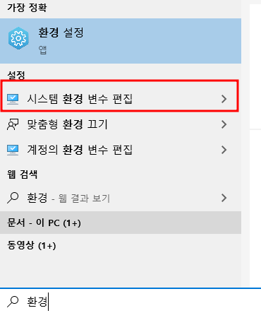 1. 아래와 같이 시스템 환경 변수 편집 창으로 들어간다.