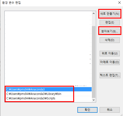참고로 이러한 환경변수를 설정하는 귀찮은 짓을 안하려면 처음 아나콘다를 설치할 때