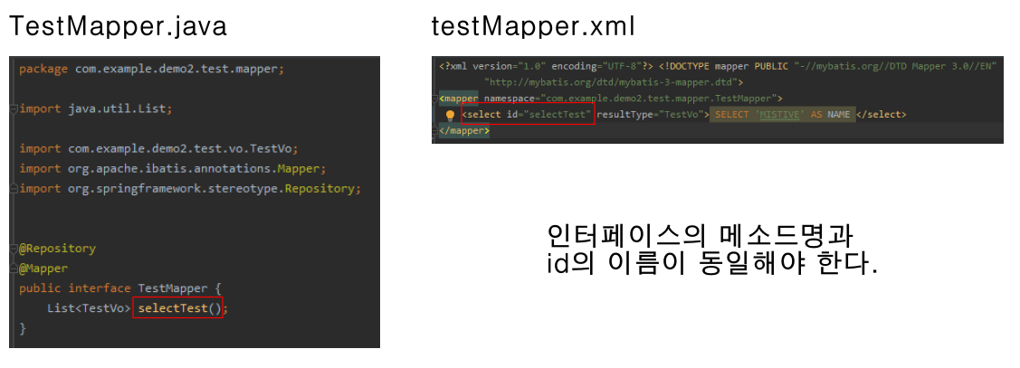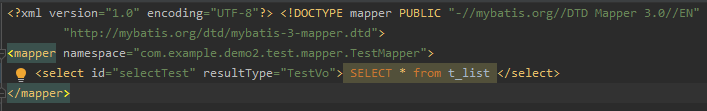 <select id="selectTest" resultType="com.example.demo2.test.vo.TestVo"> SELECT 'MISTIVE' AS NAME </select>